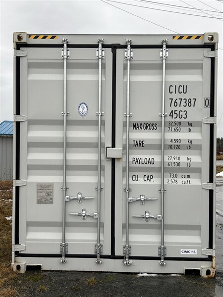 Meet the 2025 40HC Side Door — your roomy, no-nonsense storage superstar in LIGHT GREY (interior: Light Grey) and in excellent overall condition. Factory-default goodies include true high-cube dimensions (40' L x 8' W x 9'6" H), durable Corten corrugated steel shell, full-height side access door plus heavy-duty rear double doors with secure bar locks, marine-grade plywood floor over steel cross members, ventilators for airflow, welded weather-tight seams, corner castings for lifting/stacking and forklift pockets — all finished with factory primer and corrosion protection.